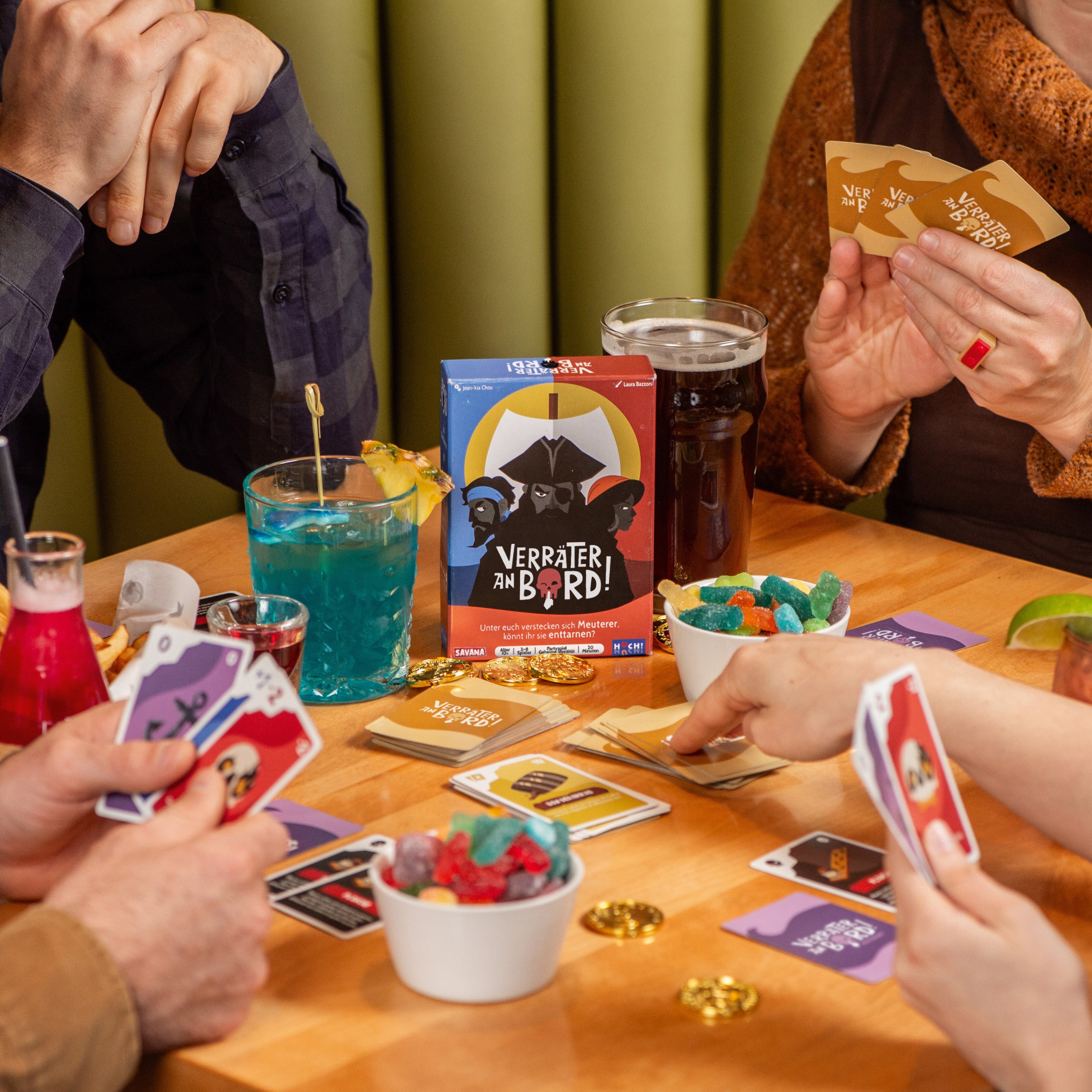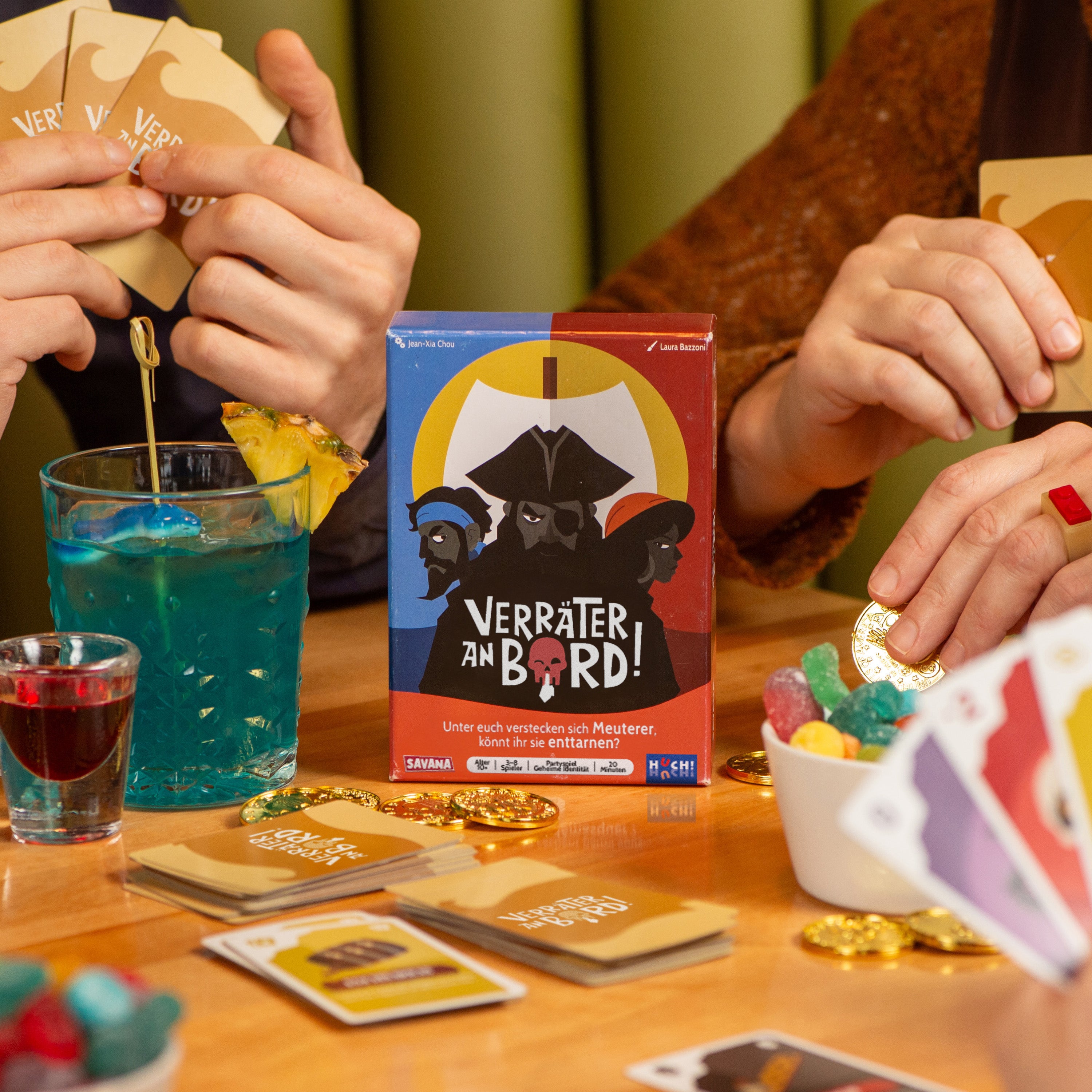 🏴☠️ Verräter an Bord ist ein Partyspiel mit geheimen Identitäten, das Bluffen, Strategie, Allianzen und Verrat vereint. Es ist das perfekte Spiel für Verräter und/oder für Spieleabende mit Freunden oder der Familie!