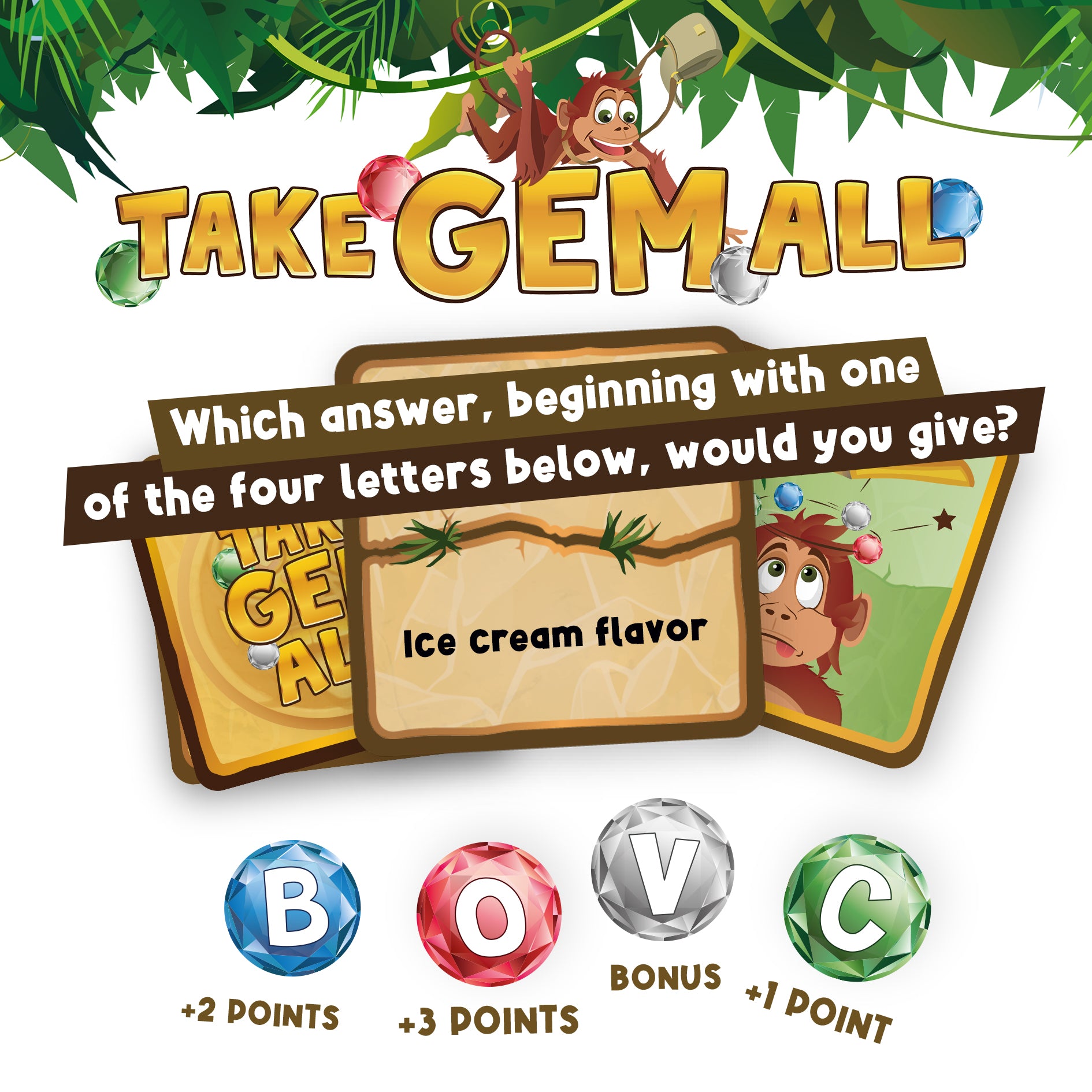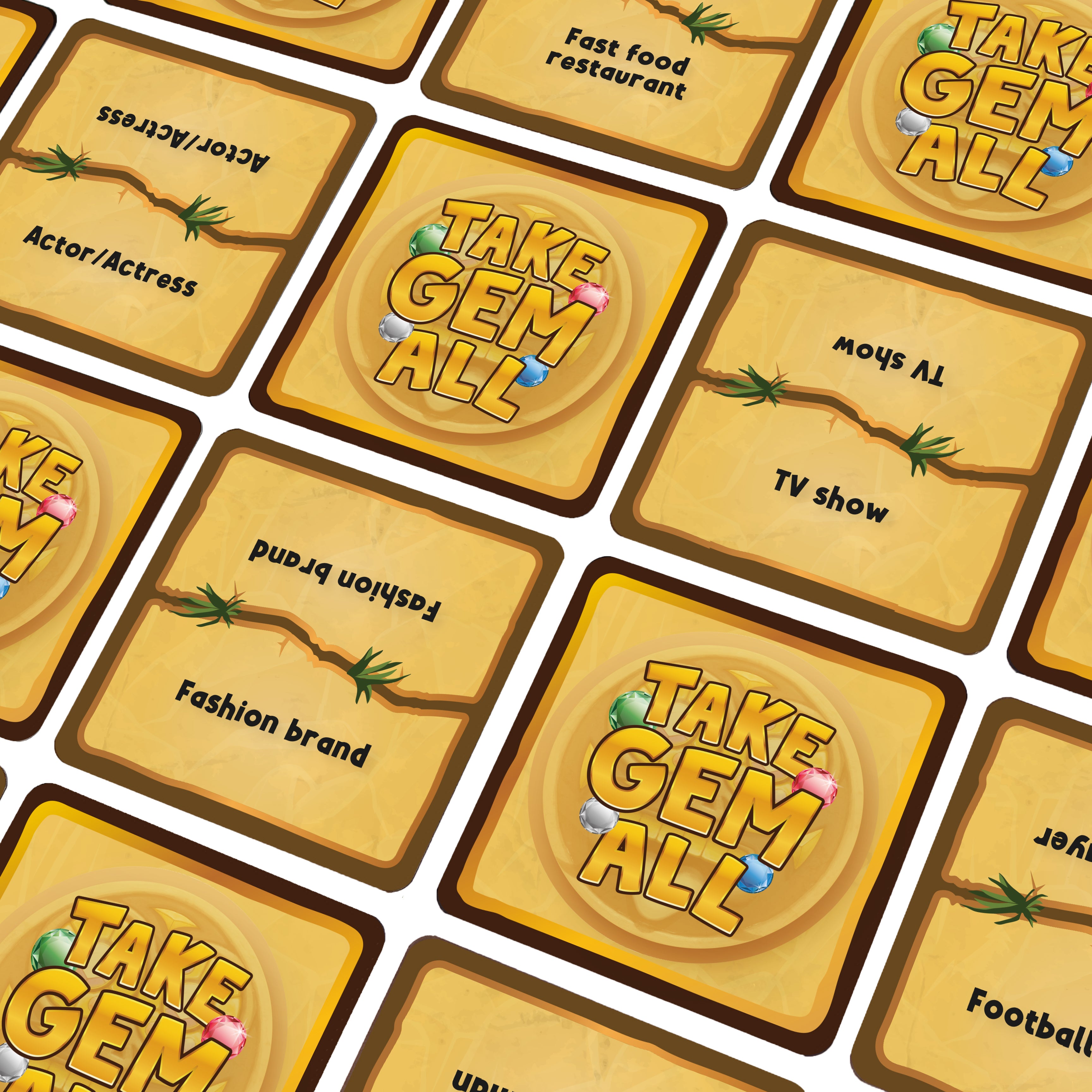 🎉 TAKE GEM ALL is a trivia party game that mixes the very best of categories in a quick and simple card game, with lots of exciting category lists ready and waiting for you to try.