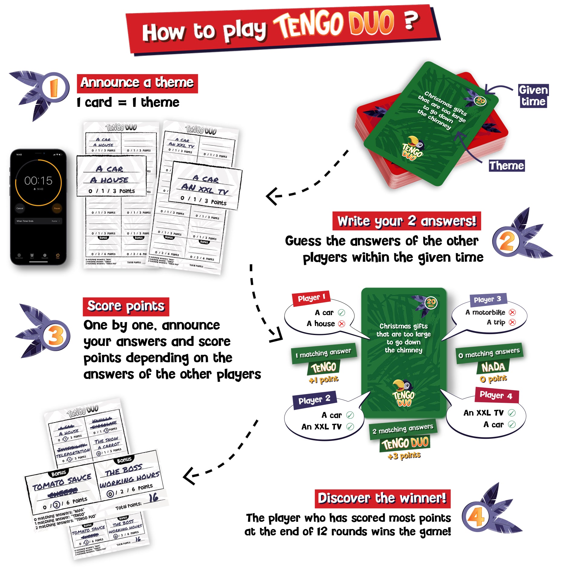 🎉 TENGO DUO is a cooperative and hilarious family party game, where the answers of some will make the gain (or pain) of others!