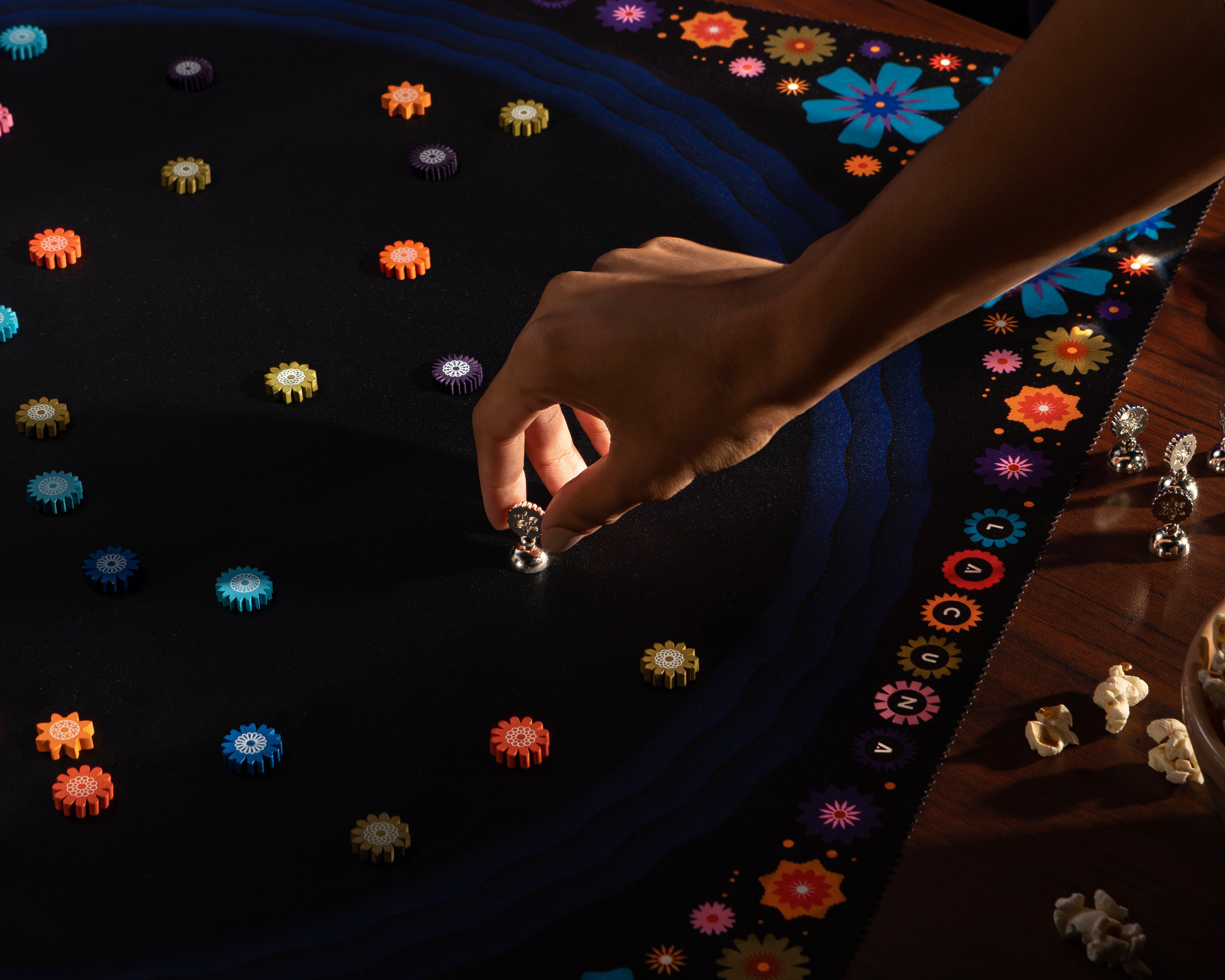 Disposez les fleurs avec soin, anticipez les mouvements de votre adversaire et placez vos pions avec une précision absolue pour contrôler le jeu jusqu’au dernier tour !